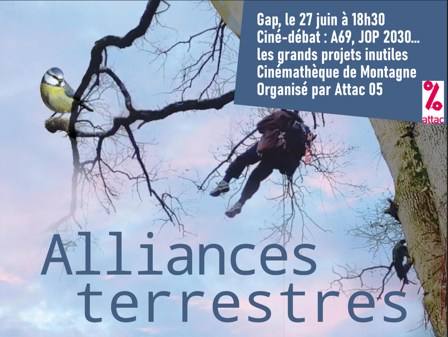 Le vendredi 27/06/2025, ATTAC 05 organise la projection du film "Alliances terrestres", le film qui retrace la lutte contre l'A69.