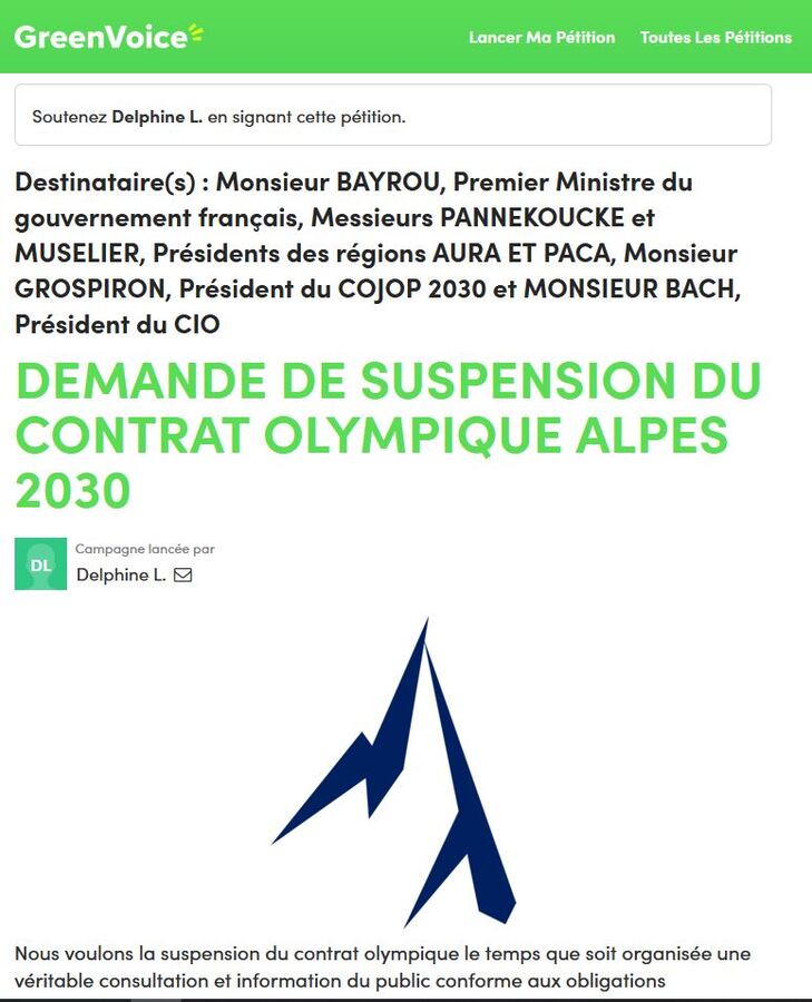"JOP 2030 : DEMANDE DE SUSPENSION DU CONTRAT OLYMPIQUE"