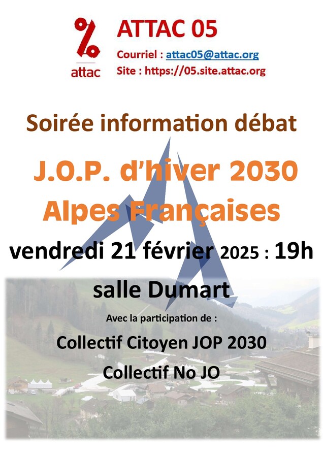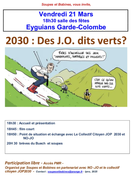 Ce sera l'occasion de faire connaitre aux personnes que nous croiserons notre mouvement et d'échanger sur les conséquences non négligeables d'un point de vue environnemental, social et financier que revêt l'organisation de jeux d'hiver en montagne, milieu d'ores et déjà fragilisé et terriblement impacté par le réchauffement climatique